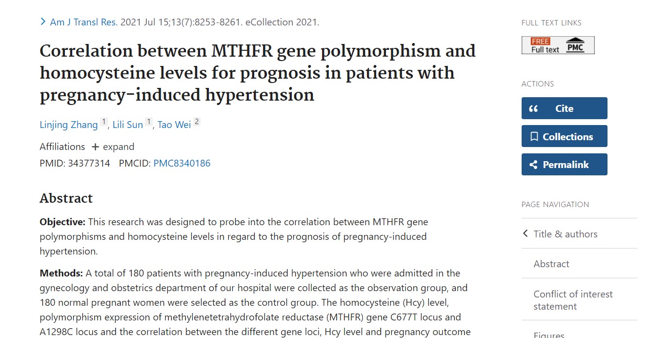 అమెరికన్ జర్నల్ ఆఫ్ ట్రాన్స్లేషనల్లో 2021 పేపర్ MTHFR 677TT గర్భధారణ వైపు స్కేల్ను ఎలా చిట్కా చేస్తుందో పరిశోధన ఖచ్చితంగా మ్యాప్ చేసింది రక్తపోటు (GH).