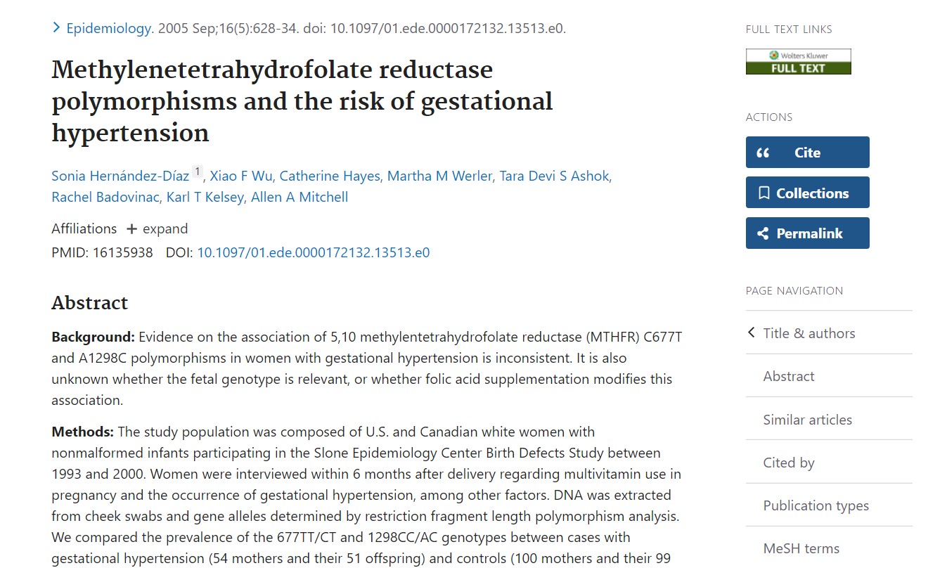 హేస్ సి, మరియు ఇతరులు.మిథైలెనెటెట్రాహైడ్రోఫోలేట్ రిడక్టేజ్ పాలిమార్ఫిజమ్స్ మరియు ది